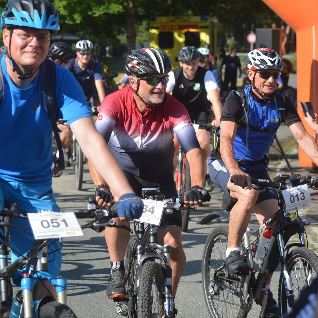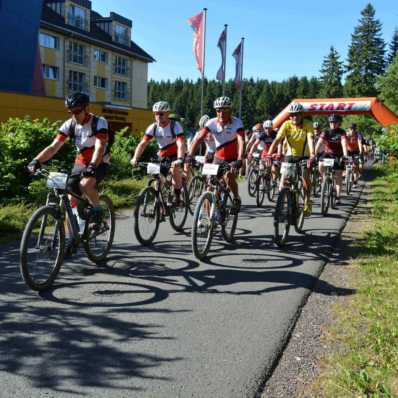 | Teilnahme: | Die Tour über insgesamt 185 km startet in Blankenstein und führt uns in zwei Tagen über den Höhenweg des Thüringer Waldes bis nach Hörschel. Für die 110 km/1750HM am ersten Tag und die 75 km/1000HM am zweiten Tag bedarf es einer guten persönlichen Vorbereitung. Streckenprofil und Distanz sind nichts für Gelegenheits-Radler und Anfänger. Für die Strecke ist ein Mountain-Bike zu empfehlen. Das Tragen eines Schutzhelmes ist Pflicht. Auf eine dem Wetter angemessene Kleidung ist zu achten!!! Teilnahmeberechtigt sind alle, die im Besitz einer Startnummer sind (aus Sicherheitsgründen erforderlich) und diese sichtbar tragen. |